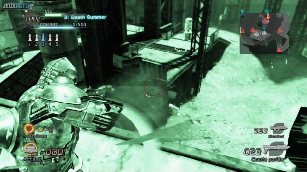 Il ne faut donc pas s'attendre à de grands bouleversement, Lost Planet 2 reste un jeu de tir à la troisième personne tout ce qu'il y a de plus classique aujourd'hui. La prise en main reste toujours aussi agréable bien que l'on aurait aimé pouvoir changer son fusil d'épaule ou pouvoir se mettre à couvert en cas de danger via un système de couverture désormais rentré dans les moeurs. Néanmoins, on se réjouit de l'introduit d'une fonction pour sprinter, un peu à la manière de Gears of War, ce qui ne déplaira pas à tous ceux (nous y compris) qui trouvaient que Wayne se déplaçait beaucoup trop lentement. Parmi les autres nouveautés de gameplay, on note aussi la possibilité pour son personnage de nager. Une fonction qui n'existait pas dans le premier épisode et pour cause, les environnements aquatiques étaient tout bonnement absents. On regrette par contre que certaines actions n'aient pas évolué avec le temps, et soient donc moins ergonomiques que d'autres références du genre. Zoomer avec la flèche haut du pavé directionnel et faire des quarts de tour avec les gâchettes, voilà le genre de manipulation archaïque qu'on aimerait ne pas voir en 2010. De même, l'implantation de lunettes thermiques est inutile. Le grappin est toujours présent et permet même de gagner du temps lors de certains passages, sans toutefois se montrer aussi polyvalent que celui de Rico Rodriguez, le héros de Just Cause 2. Quant à l'arsenal, il reste dans l'ensemble assez classique et ressemble beaucoup à celui du premier volet. On note quand même quelques variations des armes existantes et un bouclier indestructible a été ajouté. Les Vital-Suit, dont un qui rappelle celui d'Avatar, permettent toujours de décupler sa force et sa résistance au détriment de la vitesse d'action. La montée dans l'un de ces engins fait toujours son petit effet avec une petite voix digitalisée qui accentue l'entrée dans l'engin, suivi ensuite d'un bruitage tout droit sorti du film Robocop et d'un petit mouvement de caméra bien senti. Le sentiment de surpuissance offert par les Vital-Suit parachève le tout et fait de cette phase l'une des plus jubilatoires du titre. Histoire de trouver un certain équilibre entre ces gros robots suramés et la faiblesse de l'être humain, les concepteurs ont mis en place une armure intermédiaire qui permet de renforcer la résistance de son soldat, sans que celui ne perde trop sa vitesse de déplacement.