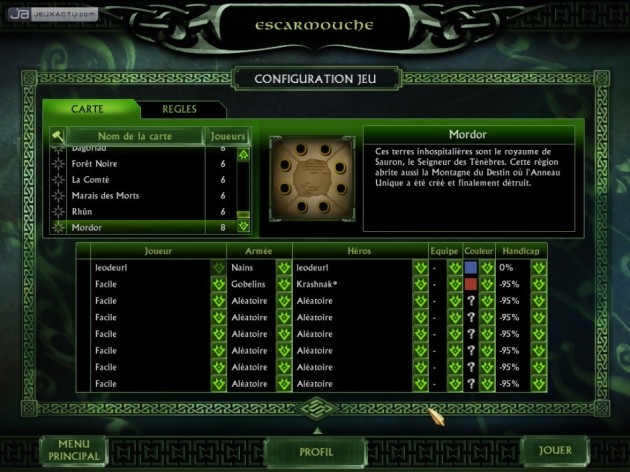 Dans ce test, nous allons vous décrire les différents modes de jeu plutôt que de parler des deux campagnes assez quelconques. Tout d’abord, il est désormais possible de créer son propre héros. Voici vraiment la grande nouveauté. Si vous avez joué au premier épisode, vous savez sans doute que ces valeureuses unités font toute la différence sur un champ de bataille, et deux ou trois d’entre elles en particulier. On songe notamment au Gandalf de niveau 10 et de son sort ultime. Si l’écran est rempli d’ennemis assaillant le vieillard et que celui-ci déclenche son sort, il les enverra tous ad patres dans une magnifique explosion bleue qui ressemble à s’y méprendre à une explosion nucléaire. A travers la plupart des batailles, vous pourrez invoquer votre héros créé de toute pièce (physique, statistiques et sorts) et l’envoyer faire un petit tour dans les contrées les plus dangereuses des Terres du Milieu. Etant donné que ce héros s’invente de toute pièce, il est possible de créer un clone de Gandalf. Imaginez donc deux magiciens similaires de niveau 10. Inutile de bâtir des armées gigantesques, ils viendront à bout de n’importe quel camp ennemi à eux seuls. Le gameplay s’en trouve particulièrement modifié. Il n’est possible d’invoquer un nouvel héros que dans les modes escarmouche et campagne personnalisée. Rassurez-vous, ce sont les modes les plus intéressants du jeu. Il existe cependant des limites à votre fantaisie. Gandalf se sert de sorts humains, car malgré son statut de demi-Dieu, il reste humain. Ne croyez pas vous servir d’une armée d’archers elfes assistée par ce type de héros puisque en optant pour la stratégie Gandalf, vous récupérez également le camp qui va avec.