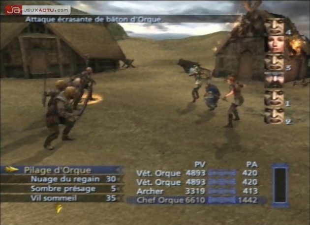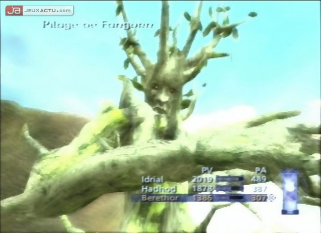 Le point de départ du Tiers Age se situe à l’époque de La communauté de l’anneau et aux prémices donc de l’affrontement épique entre les sbires de Saroumane et les potes de Gandalf. Après une intro en vidéo, nous voilà donc prêt à aller croiser le fer avec de l’orque ou de l’ourouk mais une première déception pointe immédiatement le bout de son nez : on n’incarne pas un héros du livre/film mais Berethor, un obscur garde de la citadelle du Gondor ! Et pourquoi pas le comptable de Hobbitbourg ou l’aubergiste du Poney Fringant… D’emblée, on se contrefiche de ce qui va donc pouvoir arriver à notre héros tout comme à ceux qui vont l’accompagner au fil de ses rencontres : Idrial de la Lothlorien, Elegost des Dunedain (un ersatz d’Aragorn), Hadhod (une caricature de nain), Morwen du Penmark et enfin, Eaoden du Riddermark. Nul besoin de signaler que chacun d’entre eux a ses propres spécificités comme dans tout jeu de rôle qui se respecte. A la manière d’un Final Fantasy VII, par exemple, vous ne contrôlerez, lors de la plupart des combats, que trois de vos personnages à choisir parmi les six disponibles. Tout comme dans FF7, d’ailleurs, une jauge, une fois remplie, vous permettra de déclencher un super coup. Seule différence, cette jauge augmentera en fonction des coups que vous porterez et non de ceux que vous prendrez et ce, de manière groupée et non individuelle comme dans le hit de Square. Tant qu’on est dans l’univers FF, restons-y puisque Le Tiers Age propose également un système de combats aléatoires sur les cartes que vous traversez. Tant qu’à s’inspirer (copier ?), autant le faire à partir des références du genre, me direz-vous. Mouais, vous rétorquerai-je d’une moue désabusée, c’est surtout là que s’arrête la ressemblance avec le mythique Final Fantasy VII. On ferme le ban et on passe à un autre paragraphe.