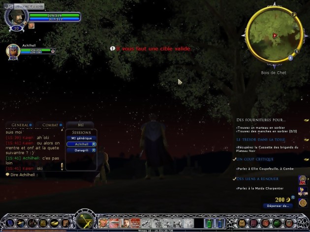 Qu’on se le dise, il n’est pourtant l’instant possible d’incarner qu’un héros d’une race de l’Alliance et bien évidemment pas les personnages principaux : Aragorn, etc. On sera toutefois amené à les rencontrer au cours de nos périnégrations et principalement lors de l’accomplissement de la quête épique. Turbine s’est laissé une marge confortable pour la suite des opérations. En effet, seule la région de l’Eriador a été modélisé. Le territoire est suffisamment vaste pour le moment mais il faudra probablement patienter un moment avant de pouvoir arpenter les terres du Rohan, du Gondor ou encore du Mordor. Du coup, l’histoire ne couvre pour l’instant que les premiers chapitres des livres, à savoir la fuite de Frodon de la Comté et les péripéties du Poney Fringant. Une intrigue suffisamment riche pour former toutefois un excellent complément aussi bien aux livres qu’aux films. On y apprend notamment quelques détails relativement croustillants pour les fans : la recherche de Frodon par les Nazgûls, comment Aragorn a-t-il su qu’il serait au Poney Fringant ou encore le rôle de ces mystérieux rôdeurs. Alors bien entendu, on est relégué à des tâches bien plus ingrates que celle du porteur de l’anneau : "tuer X monstres", "ramasser 10 fleurs de lys", "ramener un gant matelassé à un bûcheron", "récupérer des objets volés", etc. mais aussi de façon générale participer à la défense et la reconstruction des villes détruites ou encore aider la confrérie des rôdeurs. Généralement menées avec panache, certaines quêtes apportent une touche d’humour bien sympathique : jouer les courriers du cœur, amener un seau d’eau à tel endroit sans le faire tomber ou encore suivre discrètement un chien. Le farmage ou plus communément les joueurs acharnés à taper du monstre toute la journée n’y trouveront pas leur compte car le système d’expérience ne joue pas en leur faveur. Tuer un monstre, même de classe Elite ou de niveau supérieur au sien ne rapporte pas grand-chose. Il était capital que le jeu véhicule les valeurs du Seigneur des Anneaux : entres autres l’amitié, l’esprit d’équipe et le partage. A ce titre, le système de quêtes est logiquement au centre du jeu. Vraiment nombreuses, il est possible d’en accomplir beaucoup en solo mais composer un groupe (jusqu’à 6 personnes) est la manière la plus efficace pour y parvenir.