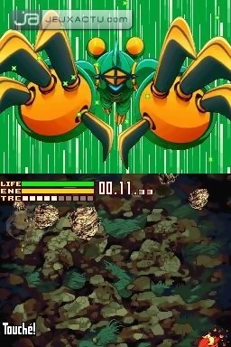 Ce serait cependant réducteur d’assimiler le jeu à un simple enchaînement de donjons biens bourrins tant il essaye de se diversifier. Kojima oblige, de petites phases d’infiltrations sont au programme. Il faudra soigneusement éviter les ennemis pour actionner un interrupteur par exemple. L’idée était déjà là dans les Boktai, dommage qu’elle n’ait été développée. Pour les amateurs des précédents épisodes, les phases de purification ne se déroule plus du tout de la même manière. Ici, après avoir achevé certains boss, vous serez envoyez dans l’espace pour des phases de shoot’em up. Seuls moments où le jeu fait honneur au stylet de la machine, on regrettera un manque de difficulté les rendant presque anecdotiques et ennuyeuses. Ce manque de consistance évident hors phase de donjon est d’autant plus regrettable que le scénario se révèle être assez bancal. Défaut à peine rattrapé par les quelques quêtes annexes assez chiches en récompense et justifiant donc pleinement leur caractère facultatif. Techniquement, Lunar Knights ne casse pas des briques. Coloré, la 2D est, soyons honnête, digne d’une GBA. Malgré tout la réalisation reste solide, aucune chute de frame rate n’est à déplorer, même quand les ennemis sont en nombre. Le faible variété des décors est encore un témoin du manque d’attention porté par les équipes de Konami aux détails. Les excellentes cinématiques animées qui ponctuent le jeu rattraperont cependant le tout.