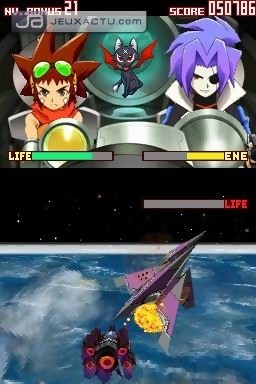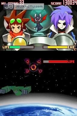 Ce serait cependant réducteur d’assimiler le jeu à un simple enchaînement de donjons biens bourrins tant il essaye de se diversifier. Kojima oblige, de petites phases d’infiltrations sont au programme. Il faudra soigneusement éviter les ennemis pour actionner un interrupteur par exemple. L’idée était déjà là dans les Boktai, dommage qu’elle n’ait été développée. Pour les amateurs des précédents épisodes, les phases de purification ne se déroule plus du tout de la même manière. Ici, après avoir achevé certains boss, vous serez envoyez dans l’espace pour des phases de shoot’em up. Seuls moments où le jeu fait honneur au stylet de la machine, on regrettera un manque de difficulté les rendant presque anecdotiques et ennuyeuses. Ce manque de consistance évident hors phase de donjon est d’autant plus regrettable que le scénario se révèle être assez bancal. Défaut à peine rattrapé par les quelques quêtes annexes assez chiches en récompense et justifiant donc pleinement leur caractère facultatif. Techniquement, Lunar Knights ne casse pas des briques. Coloré, la 2D est, soyons honnête, digne d’une GBA. Malgré tout la réalisation reste solide, aucune chute de frame rate n’est à déplorer, même quand les ennemis sont en nombre. Le faible variété des décors est encore un témoin du manque d’attention porté par les équipes de Konami aux détails. Les excellentes cinématiques animées qui ponctuent le jeu rattraperont cependant le tout.
