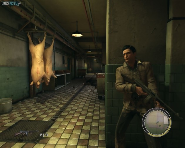 Aussi interactif soit-il, un film n'est pas un jeu et Mafia II compte également sur une bonne dose d'action et un soupçon d'infiltration pour attirer le gamer. La première de ces composantes tient essentiellement aux nombreuses fusillades qui ont lieu durant l'aventure. Puissantes et précises, les armes sont agréables à utiliser, tandis que le système de couverture remplit parfaitement son office. Une touche suffit pour se planquer immédiatement vers l'abri visé et, selon sa hauteur, adopter automatiquement une position debout ou accroupie. Testé sur PC, le jeu fonctionne aussi bien avec une manette qu'avec le combo clavier/souris et, surtout, gère parfaitement, immédiatement et de manière transparente la transition entre les deux. Parfait pour conduire avec souplesse au pad analogique, viser avec précision à la souris et combiner ainsi le meilleur des deux mondes, l'affichage des aides à l'écran s'adaptant instantanément au périphérique actuellement manipulé par le joueur. Au delà des fusillades, Mafia II réserve également son lot de combats à mains nues, notamment lors d'un niveau à la fois digne de Prison Break et de Fight Club. Coup puissant, coup rapide et esquive, le système et les rares combos autorisés sont simples, voire simplistes. Mais, une nouvelle fois, ces scènes servent surtout l'ambiance et ne se destinent pas aux fanas des jeux de baston. Les mécanismes d'infiltration sont un peu plus riches puisqu'ils font parfois appel à des déguisements (de manière scriptée dans des missions bien précises), autorisent la marche furtive, la mise hors-service des ennemis approchés discrètement par derrière, et le déplacement des corps inanimés. Les niveaux suffisamment peu peuplés pour mettre à profit ces mécanismes sont rares mais toujours bienvenus.