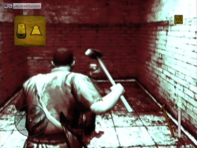 Aux commandes de Daniel Lamb, le joueur assiste – passivement – à l’exécution (un étranglement) du Dr Whyte, l’un des médecins qui suivaient de près son cas psychique. C’est ainsi que débute Manhunt 2, par un meurtre de sang froid auquel vient se greffer un hurlement nerveux provoqué par une incompréhension de l’intéressé, ce qui permet de plonger d’emblée le joueur dans l’ambiance qui s’annonce bien malsaine. Si Daniel fait partie des patients qui séjournent au Dixmor Hospital, ce n’est pas par défaillance psychologique mais bien parce qu’il a servi de cobaye aux expériences foireuses de scientifiques bossant pour un groupuscule obscur. Mais le soir de son acte odieux, c’est tout l’établissement qui est pris d’assaut par ces barrés du cerveau bien décidés à revoir la lumière naturelle du jour. On est donc loin du jeu de télé-réalité où l’on tuait des malfrats sans scrupules pour les besoins d’une télé locale en manque d’audience. Cependant, Manhunt 2 a conservé son fil conducteur principal, celui qui lui permet d’affirmer haut et fort son statut de suite directe ou même spirituelle, à savoir l’extrême violence. Si la première version que nous avions entrevue il y a un an et demi déjà nous permettait de constater à quel point l’imagination des développeurs de Rockstar London était sadique, la copie corrigée et acceptée par les motions de censure n’a plus grand-chose à voir avec le modèle d’origine. Si sur PlayStation 2, les exécutions sont masquées par des flashs de lumière, empêchant de distinguer quoique ce soit, sur Wii, c’est carrément un filtre rouge doté d’une lumière surexposée et d’une caméra instable qui vient gâcher le spectacle mortuaire. C’était le prix à payer pour voir un jour Manhunt 2 sortir dans le commerce, et bien entendu, cette épuration totale dénature le concept d’origine et ternit un peu plus l’image de Manhunt 2.