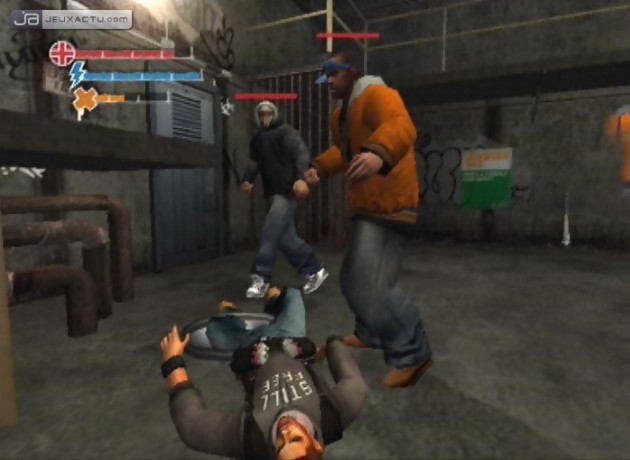 Il faut absolument couper court à cette comparaison avec GTA. Entendons nous bien, si les deux titres promeuvent la culture urbaine et une certaine liberté d'action, leur similitude s'arrête là. Ainsi, Getting Up s'architecture autour de plusieurs niveaux. Tombant sous le coup de la linéarité, le champ d'action est nettement plus restreint que celui d'une ville et on aura parfois la frustration de se cogner contre les fameux murs invisibles. D'un autre côté, il s'agit d'un mal pour un bien puisque cette orientation a permis de renforcer le caractère immersif du jeu. En effet, les développeurs ont accompli un énorme travail d'ambiance. Le level design est somme toute plutôt bon, les personnages sont charismatiques et la progression du jeu s'accompagne d'une bande sonore qui déchire. Wesh ! Pour ainsi dire, le doublage est particulièrement convaincant et la play-list accueille de grands noms de la scène hip hop. On pourra même écouter les pistes de son choix via l'intermédiaire de son iPod et débloquer de nouveaux tubes durant la partie. Par ailleurs, les menus sont très soignés et les différentes œuvres dans le jeu le sont tout aussi sympathiques. Rien à redire non plus du côté des animations des personnages (si ce n'est peut-être que Trane saute comme un pingouin asthmatique). Seulement, la réalisation pêche un petit peu lors de certaines occasions. Sujet à quelques ralentissements sur PS2,