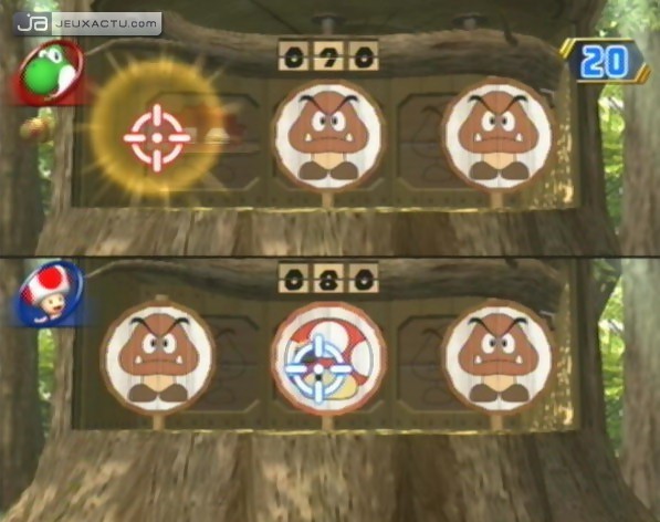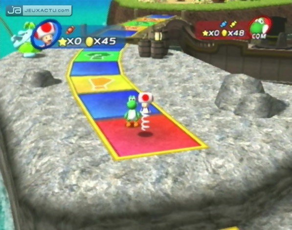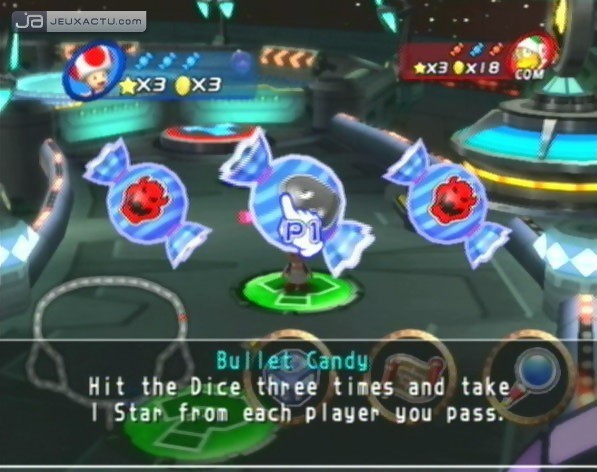 DK's Treetop Temple est le seul plateau qui se joue à l'ancienne, c'est-à-dire claquer une vingtaine de pièces pour se payer une étoile qui change de place à chaque fois qu'un joueur se l'approprie. Idéal pour échauffer ses crasses. Le concept ultra-stratégique de Tychoon Town reprend celui de Windmillville, à savoir surenchérir pour récupérer des hôtels. Plus l'investissement est important, plus on récupère d'étoiles, le maximum étant une centaine de pièces pour être proprio d'un hotel quatre étoiles. Ici, les pros des mini-jeux sont logiquement favorisés car il s'agit du moyen le plus rapide pour se remplir les poches. On peut aussi essayer de faire quarante fois le tour du même pâté de maisons, mais ça ne paie pas très bien. King Boo's Haunted Hideaway et sa maison hantée est sans doute le plateau le plus original. A l'inverse des autres aires de jeu, aucune carte n'est dispo pour se repérer et trouver le roi Boo qui détient les étoiles. On a comme seules armes sa bonne étoile et son flair pour ne pas tomber dans l'une des oubliettes qui renvoient illico au point de départ. Dans Goomba's Booty Boardwalk et son ambiance Pirates des Caraïbes, c'est un goomba peu scrupuleux qui a l'étoile en sa possession. Comme tout a un prix, il est prêt à l'échanger contre 50 écus. L'objectif est donc d'économiser un maximum de pièces avant de tomber nez à nez avec lui, faute de quoi ses sbires se chargeront de vous renvoyer à la case départ avec un bon coup de canon aux fesses. Mais ce serait trop facile de réduire ce parcours à un simple sprint financier; c'est la raison pour laquelle il n'existe qu'un seul chemin pour tout le monde, ce qui expose forcément chaque participant aux coups bas des voisins.