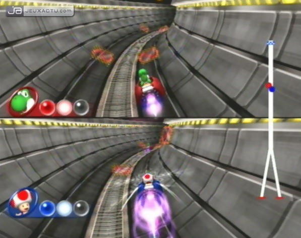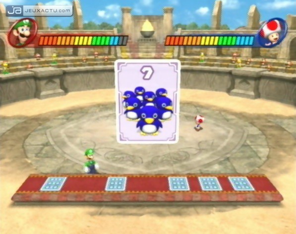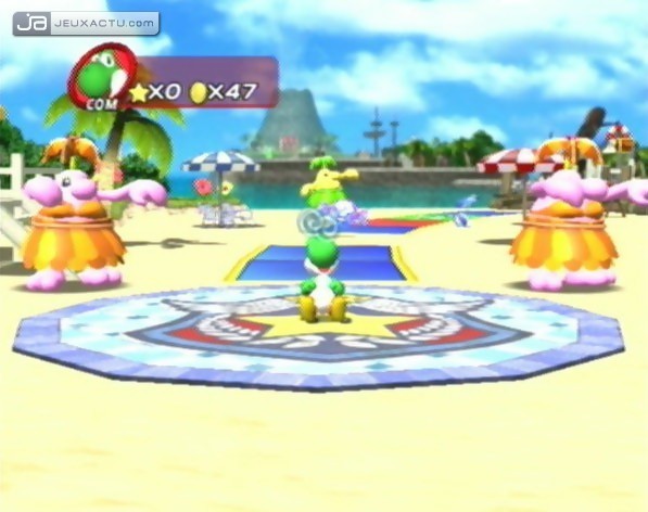 DK's Treetop Temple est le seul plateau qui se joue à l'ancienne, c'est-à-dire claquer une vingtaine de pièces pour se payer une étoile qui change de place à chaque fois qu'un joueur se l'approprie. Idéal pour échauffer ses crasses. Le concept ultra-stratégique de Tychoon Town reprend celui de Windmillville, à savoir surenchérir pour récupérer des hôtels. Plus l'investissement est important, plus on récupère d'étoiles, le maximum étant une centaine de pièces pour être proprio d'un hotel quatre étoiles. Ici, les pros des mini-jeux sont logiquement favorisés car il s'agit du moyen le plus rapide pour se remplir les poches. On peut aussi essayer de faire quarante fois le tour du même pâté de maisons, mais ça ne paie pas très bien. King Boo's Haunted Hideaway et sa maison hantée est sans doute le plateau le plus original. A l'inverse des autres aires de jeu, aucune carte n'est dispo pour se repérer et trouver le roi Boo qui détient les étoiles. On a comme seules armes sa bonne étoile et son flair pour ne pas tomber dans l'une des oubliettes qui renvoient illico au point de départ. Dans Goomba's Booty Boardwalk et son ambiance Pirates des Caraïbes, c'est un goomba peu scrupuleux qui a l'étoile en sa possession. Comme tout a un prix, il est prêt à l'échanger contre 50 écus. L'objectif est donc d'économiser un maximum de pièces avant de tomber nez à nez avec lui, faute de quoi ses sbires se chargeront de vous renvoyer à la case départ avec un bon coup de canon aux fesses. Mais ce serait trop facile de réduire ce parcours à un simple sprint financier; c'est la raison pour laquelle il n'existe qu'un seul chemin pour tout le monde, ce qui expose forcément chaque participant aux coups bas des voisins.