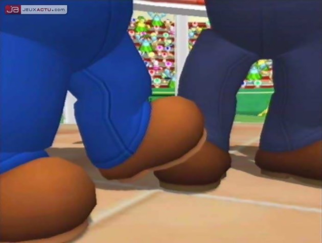Ces Special Shots sont une énième occasion pour Nintendo de mettre en scène ses mascottes dans des situations plus ou moins comiques. Pour se défendre des attaques ennemies, Waluigi se bouche les oreilles et se met à nager dans une piscine fictive qui couvre toute sa surface, pour renvoyer la balle de l'autre coté du filet. Donkey Kong, lui, se permet de lancer une banane géante pour rattraper au vol un coup un peu trop éloigné de son énorme carcasse. Par contre, là où la chose est moins drôle c'est de constater que les super-attaques défensives permettent de rattraper tous les coups. Oui, tous les coups ! Si vous envoyez un coup droit en Turquie alors que votre pote partait en direction de Madrid, il réussira tout de même à vous renvoyer la balle comme s'il était à Istanbul. Frustrant, non ? Et ça l'est d'autant plus lorsque les points deviennent de plus en plus difficiles à remporter, notamment lorsque l'on affronte le CPU pour venir à bout des différentes coupes. Non pas que l'I.A. soit insurmontable comme certains ont pu le laisser entendre, mais force est de constater que certains retournements de situation sont difficilement supportables. Par ailleurs, à chaque fois que l'on exécute un coup-qui-tue-tout-sa-race, on a droit à une jolie séquence animée qui a le mérite de casser le rythme du jeu. Pas très malin ça, messieurs. Au final, on ne sait pas trop où la balle va atterrir, et on s'en remet un peu (beaucoup même) à la providence. Avec les Special Shots, Nintendo aurait du jouer la carte de la rareté car ces coups spéciaux se banalisent assez rapidement. Pour encore mieux privilégier la technique au bourrinage, il aurait été préférable de faire en sorte qu'un mouvement spécial offensif et défensif ne soit utilisable qu'une fois par jeu. Cela aurait évité la multiplication des one man show à l'écran. Les tricheurs n'auraient également pas été tentés de sélectionner leur personnage uniquement parce que ses supers-pouvoirs sont très avantageux. Sans citer de noms pour ne froisser aucune star du casting de Mario Power Tennis, il faut reconnaître que certains supers sayajin sont plus supers que d'autres.