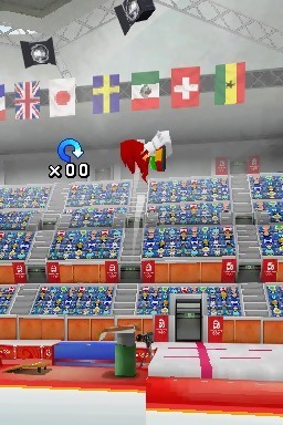 Docile en classe débutante et avancée, Mario & Sonic aux Jeux Olympiques sur DS sort littéralement les crocs en catégorie experte, avec certains coups de gruge de l'I.A. qui ferait passer Nintendo pour le développeur du jeu. Si les disciplines ne s'avèrent pas difficiles à dompter au stylet, il faut tout de même reconnaître que l'on prend moins de plaisir qu'avec la Wiimote et le Nunchuk. Si certaines épreuves - trampoline, tir au pigeon d'argile, saut à cheval - réussissent à tirer leur épingle du jeu avec le crayon optique, d'autres se révèlent par contre totalement hasardeuses. On pense notamment au saut en longueur, au triple-saut et au lancer de javelot pour lesquels aucune indication sur l'angle n'est donnée au moment du lancer ou de l'impulsion, alors qu’il s’agit d’un point critique pour ces disciplines. Carton rouge aussi au tir à l'arc où la vitesse du vent influence certes la précision du tir, mais de façon disproportionnée. Pour une force de 7m/s par exemple, il faudra décaler sa flèche de quelques centimètres pour viser juste, quelques pixels de plus que pour une vitesse du vent calée à 1m/s. Mario & Sonic aux Jeux Olympiques sur DS se joue aussi de façon plus conventionnelle - tennis de table, plongeon acrobatique -, ce qui brise naturellement la magie tactile, d'autant plus que certaines matières sont complètement ratées. A l’instar de la version Wii, le mode Rêve donne un second souffle à Mario & Sonic aux Jeux Olympiques sur DS, grâce notamment à l'apparition de gimmicks. En Basketball-Rêve, un champignon permettra d'agrandir la taille de ses paniers tandis que l'étoile triplera les points marqués. L'Athlétisme-Rêve casse toujours aussi bien les bras - ou la main, c'est selon - avec le stylet, un plaisir sadique que l'on savoure sans honte et que l’on avait peur de ne pas retrouver en fouinant dans la cartouche. Et puisqu'il faut bien caser deux mots sur la réalisation du jeu, Mario & Sonic aux Jeux Olympiques ne fait pas dans la finesse, et affiche des environnements taillés à la serpe. La modélisation des personnages se veut néanmoins correcte, ce qui permet de sauver les meubles. Quant à l'ambiance sonore du jeu, elle reprend les thèmes musicaux que l'on avait déjà entendus sur Wii, avec un speaker toujours aussi niais – l’escrime vaut le détour ! – dans ses interventions.