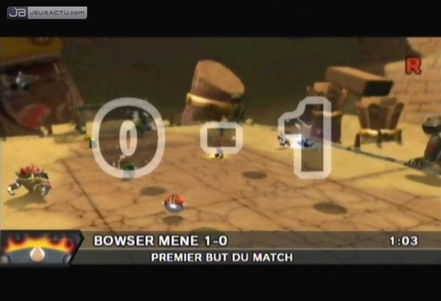 Pour conserver un côté fun, on retrouve les attaques spéciales, découpées en deux parties : les super-strikes et les méga-strikes. Pour parvenir à les déclencher, il va falloir jouer avec la jauge qui apparaît à l’écran après avoir suffisamment maintenu le bouton enfoncé. Pas facile à faire quand on sait que les adversaires ne laissent que peu de temps mort pour déclencher une grosse frappe. En cas de réussite, il est possible de marquer jusqu’à 6 buts en une seule frappe. C’est la grande particularité du méga-strike, bien utile pour creuser l’écart ou à l’inverse de remonter son score. Pas de panique pour celui qui subit l’attaque, un mini-jeu lui permet de contrer chaque balle à l’aide du pointeur de la Wiimote. Pas de grands changements dans les lignes donc pour se Mario Strikers Charged Football qui se contente d’appliquer une recette gagnante en y ajoutant quelques subtilités néanmoins indispensables. Mais l’atout majeur de cette suite sur Wii est bien évidemment son mode multijoueur, jouable en ligne. A l’instar des jeux tels que Mario Kart DS, la connexion se fait avec une aisance enfantine et les parties moroses en solo deviennent subitement palpitantes. Un avantage indéniable.