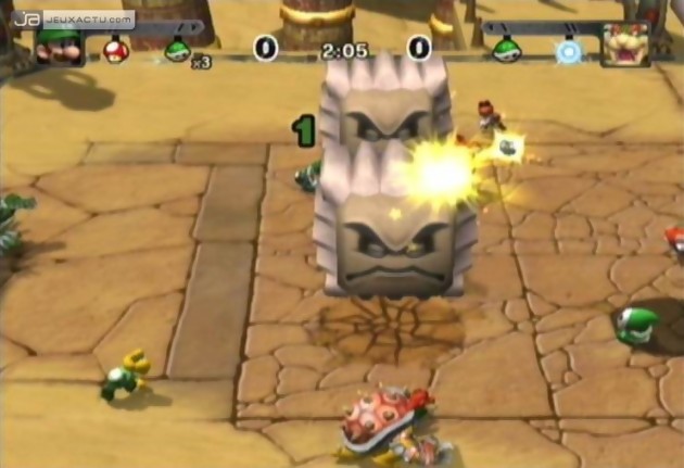 Pour conserver un côté fun, on retrouve les attaques spéciales, découpées en deux parties : les super-strikes et les méga-strikes. Pour parvenir à les déclencher, il va falloir jouer avec la jauge qui apparaît à l’écran après avoir suffisamment maintenu le bouton enfoncé. Pas facile à faire quand on sait que les adversaires ne laissent que peu de temps mort pour déclencher une grosse frappe. En cas de réussite, il est possible de marquer jusqu’à 6 buts en une seule frappe. C’est la grande particularité du méga-strike, bien utile pour creuser l’écart ou à l’inverse de remonter son score. Pas de panique pour celui qui subit l’attaque, un mini-jeu lui permet de contrer chaque balle à l’aide du pointeur de la Wiimote. Pas de grands changements dans les lignes donc pour se Mario Strikers Charged Football qui se contente d’appliquer une recette gagnante en y ajoutant quelques subtilités néanmoins indispensables. Mais l’atout majeur de cette suite sur Wii est bien évidemment son mode multijoueur, jouable en ligne. A l’instar des jeux tels que Mario Kart DS, la connexion se fait avec une aisance enfantine et les parties moroses en solo deviennent subitement palpitantes. Un avantage indéniable.