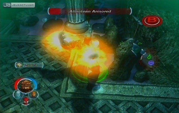 Cette facilité de progression est peut-être un peu trop présente même pendant les combats. Pas besoin d’utiliser de fioles magiques ou de breuvages médicaux, les orbes rouges que vous récupèrerez en tuant vos ennemis rempliront aisément votre jauge de vie. Parfois même certains personnages comme Doctor Strange se régénèreront au contact des vilains. Il est donc rare de mourir, mais pas impossible. Si votre avatar s’écroule au sol, il vous reste trois autres collègues à utiliser car vous pouvez les choisir quand vous voulez et comme vous voulez via la croix multidirectionnelle. Mais en règle générale, ce sont les personnages dirigés par l’intelligence artificielle qui meurent les premiers tout simplement parce qu’ils ne sont pas très fût-fûtes lorsque vous vous approchez des ravins ou d’une rivière de lave. Malgré le bouton RT qui permet de leur donner des ordres dont celui de vous suivre, d’attaquer ou de défendre, ils n’hésitent pas à poursuivre un adversaire même lorsqu’il périt dans les flammes. Autant dire que pour palier à ce problème, le mode "Coopération" vous tend les bras. Jouables jusqu’à quatre sur une seule console ou sur Xbox Live malgré quelques problèmes de lag, ce mode double considérablement la durée de vie du jeu. Comptez une dizaine d’heures de jeu en solo sans vous occuper des nombreuses missions annexes caractérisées par des disques de simulation d’entraînement pour terminer Marvel Ultimate Alliance.