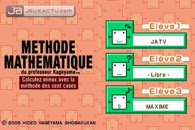 Nouveau-né de la gamme Touch! Generations, Méthode Mathématiques du Professeur Kageyama : Calculez mieux avec la méthodes de cents cases (son nom complet) poursuit la politique de Nintendo de faire du jeu vidéo un moyen ludique d’améliorer ses performances intellectuelles. Une façon comme une autre de joindre l’utile à l’agréable. Mais si le Programme d’Entraînement Cérébral du Dr. Kawashima était parvenu à nous surprendre grâce à son originalité et ses exercices variés, cette méthode arithmétique est loin d’être aussi complète. Je m’explique.