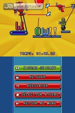 Les plus anciens de nos lecteurs se rappelleront certainement le mythique titre de Sierra Online : The Incredible Machine. Sorti en 1992 sur PC, le jeu nous proposait de créer des réactions en chaîne, relativement tirées par les cheveux, pour arriver à faire éclater des ballons de baudruche. Un puzzle-game retors qui était l'application parfaite du célèbre adage "pourquoi faire simple quand on peut faire compliqué ?". Avec ses nombreux niveaux et son éditeur de challenge, The Incrédible Machine avait rendu fou un bon nombre de gamers. 16 ans plus tard, les développeurs de Midway se sont dit "pourquoi faire compliqué quand on peut faire simple" et ont donc fait les fond de tiroir pour ressortir la bonne vieille recette de Jeff Tunnell et nous pondre Mechanic Master sur DS.