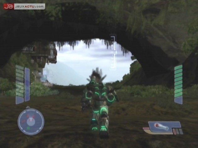 De planète en planète, vous serez amené à détruire un nombre impressionnant d’engins et de bâtiments (profitant d’un décor hautement destructible), et si les Mechs constitueront le gros de son arsenal, d’autres véhicules vous aideront dans votre longue marche. C’est ainsi qu’on prendra, entre autre, le contrôle d’un tank équipé d’un snipe vous permettant d’éliminer les tourelles ennemis à distance avant de finir le travail au missile. Quelque soit votre véhicule, vous pourrez upgrader vos armes en ramassant les quelques bonus laissés ici et là, et si cela reste assez anecdotique sur certains véhicules, un bon équipement permettra de faire la différence entre deux Mechs au cœur d’un combat. Entre les traînées de fumées des missiles partant en masse, et les déformations de l’air sous les tirs lasers fraîchement améliorés, MechAssault 2 devient un haut nom de la pyrotechnie, et ce ne sont certainement pas les explosions et leur magnifique onde de choc qui nous feront dire le contraire. Malheureusement, si ces artifices brûlent de milles feux, les textures du jeu n’ont pas eu autant d’attention, et malgré les univers variés du jeu (urbain, marais ou encore plaines enneigées), elles ne nous paraissent que bien trop fades. On zappera donc la partie touristique pour se consacrer à la destruction massive de bout en long, et si certaines missions vous demanderont de protéger une base pendant un laps de temps ou encore d’escorter des alliés, la meilleure des défenses restera l’attaque, et l’on ne s’en privera pas. A défaut d’être intelligentes et de collaborer les unités ennemies seront nombreuses, mais pas autant que leurs tirs, et il ne sera pas bon de rester statique dans ce monde en perpétuelle destruction. On s’étonne alors, dans le bon sens du terme, de l’excellente souplesse dont font preuves les mastodontes de métal, et entre la prise en main immédiate et une immersion sonore grandiose, on cours rapidement d’unité en unité, ne s’arrêtant que de temps en temps, pour contempler la grandiose explosion d’un Mech adverse comme on regarde un couché de soleil.