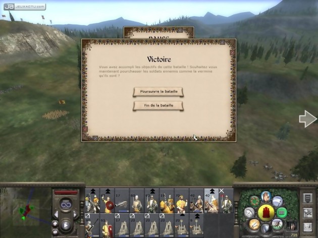 Si la carte du terrain de jeu est assez jolie, ce n’est rien par rapport aux batailles. Avec un zoom assez lointain, on distingue ces grandes armées. On regrette juste que les décors soient un peu vides. Mais en se rapprochant un peu, c’est juste magnifique. Les côtes de maille luisent au soleil, éblouissent l’écran grâce à la technologie HDR semble-t-il. En général, quand on dit HDR, vous avez tendance à vous méfier. Ouhla : ça va ramer. Et bien détrompez-vous, c’est plutôt chouette avec une configuration moyenne. Dans le pire des cas, il suffit de désactiver les ombres pour gagner quelques images par seconde. Les effets de lumière sont eux aussi très réussis. Il faut voir les boulets enflammés envoyés par des trébuchets découper le ciel en deux pour apprécier le spectacle. La très grande classe, à tous les niveaux.