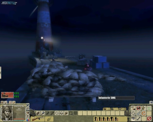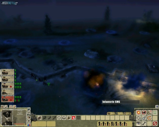 On retrouve en revanche facilement ses marques en ce qui concerne l'univers du jeu puisqu'il s'agit une fois de plus de la seconde guerre mondiale. On commence franchement à saturer mais, heureusement, Men of War : Red Tide se concentre sur le front de l'est et plus particulièrement sur les évènements ayant eu lieu autour de la mer Noire. On commence donc l'aventure en septembre 1941 à Grigorievka, un village proche d'Odessa, aux commandes du troisième régiment de marine de la mer Noire. Cette unité d'élite soviétique est spécialisée dans les opérations près des côtes et multiplie donc les scènes de débarquement (plus ou moins réussies, puisque certaines commencent par un crash d'avion ou un naufrage de navire). Le moteur 3D utilisé pour représenter l'action n'est pas extrêmement spectaculaire, mais il reste très honnête et suffisant pour retranscrire de manière convaincante les différents évènements. Il offre surtout une grande destructibilité des décors. Les abris de fortune, fussent-ils constitués de véritables habitations, ne résistent pas longtemps aux tirs de mortier. Il faut donc sans cesse placer au mieux ses unités et réévaluer en permanence les meilleurs positions de tir disponibles. Le jeu nous aide en cela grâce à une prévisualisation "fantomatique" de la position d'arrivée de nos hommes. Plus concrètement : en sélectionnant un groupe puis en approchant le curseur de souris d'une zone de couverture, les silhouettes grisées des soldats apparaissent et représentent de manière détaillée leur posture (à genoux, dos au mur, etc.). Avant de cliquer et de donner l'ordre de déplacement, on peut alors adapter au mieux la formation en testant précisément différentes zones d'arrivée, afin d'éviter par exemple qu'un des hommes se retrouve à découvert ou dos à l'ennemi. Un souci du détail qui résume parfaitement l'état d'esprit général du jeu : complet, complexe, exigeant, mais qui fournit tous les outils pour définir au mieux ses tactiques de combat.