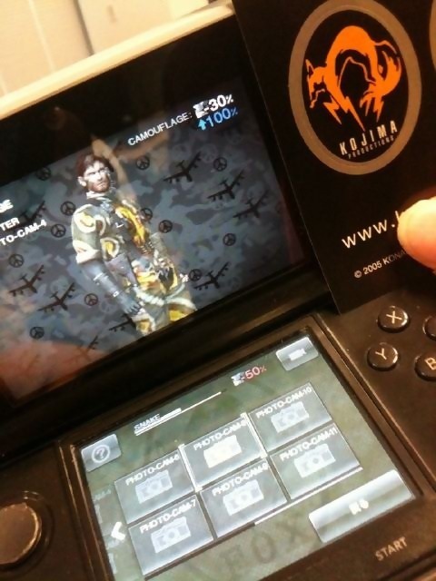 Afin de coller aux nouvelles possibilités de gameplay offertes par la 3DS, Kojima Productions a décidé de repenser l'un des points problématiques de Metal Gear Solid 3 : Snake Eater, à savoir la navigation assez laborieuse dans les menus pour modifier un camouflage ou chercher sa nourriture. Ces principales fonctions, indispensables pour coller au concept de survie en milieu hostile, sont désormais accessibles directement sur l'écran tactile et matérialisées par des icônes bien identifiables. Un souci d'ergonomie et de rapidité d'exécution appréciable qui n'arrive pourtant pas à convaincre pleinement. Très petites, ces icônes sont également bien trop collées aux bords de l'écran tactile et manquent vraiment d'accessibilité pour les doigts un peu charnus. D'autant que si elles suppriment une étape dans la recherche d'une ration ou d'une tenue, elles ne permettent pas de naviguer rapidement entre les différentes catégories. Par exemple, après avoir discuté cinéma avec Paramédic, il est obligatoire de revenir au menu de base de l'écran tactile pour ensuite se rendre dans les réserves de nourriture ; et si le joueur décide à ce moment de modifier aussi son camouflage, il devra effectuer la même manipulation. Il est tout bonnement impossible de faire défiler ces divers menus. Un choix archaïque qui tranche avec cette volonté de moderniser une prise en main déjà bien entamée par les limitations mêmes de la 3DS. Pas de suspense, jouer sans le Circle Pad Pro est pénible. La majeure partie des mouvements force le joueur à lâcher les commandes et provoque forcément une perte de rythme, de précision et d'immersion. En configuration de base, le stick gauche sert à avancer et les quatre touches de façade à tourner la caméra libre, héritière de la version Subsistence. Grimper, soulever un ennemi, se baisser, se lever, toutes ces actions de base sont affiliées à la croix directionnelle. Autant dire qu'en pleine course-poursuite, ce qui ne manque pas d'arriver lors d'un première partie, il est très facile – même en ayant l'habitude – de tâtonner avant de trouver le moyen d'effectuer le mouvement voulu. L'appendice étrange corrige un grand nombre de ces problèmes et replace sous les doigts une répartition des boutons bien plus pratique. A l'inverse, elle remet en avant le manque d'ampleur des joysticks de la console de Nintendo, même s'il est possible d'augmenter ou de réduire leur sensibilité dans un ensemble d'options extrêmement complet. Un réglage qui s'applique sur chaque type de vue une fois l'arme dégainée, que le joueur choisisse l'approche FPS, celle typée MGS 4 (TPS), caméra sur l'épaule, ou encore l'Automatique qui cible l'ennemi le plus proche. Béquille utile pour certains gunffights sans le Circle Pad Pro, cette dernière reste tout de même assez dispensable dans la majorité des cas, retirant une bonne part de challenge.