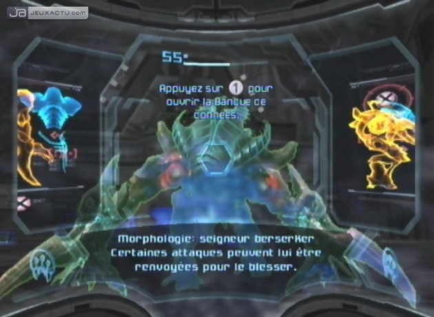 Le jeu impose une atmosphère qui ne laissera pas insensible le coeur des plus pierreux. Chaque découverte d'une nouvelle planète offre sa dose de stress, le joueur s'interrogeant sur la nature des monstres qui habitent les lieux. Les points de sauvegarde ne sont pas légion, mais le niveau de difficulté a été atténué avec la présence systématique d'un check point juste devant la tanière du boss. Au risque de passer pour des masos, on aurait tout de même préféré que les développeurs nous épargnent cette gentillesse afin de goûter de nouveau à cette difficulté insurmontable qui caractérisait tant les épisodes 2D. Non pas que les opus Prime soient faciles à dompter, mais la 3D a sans conteste altéré leur intransigeance. Cela dit, les boss demeurent redoutables, et la découverte de leur point faible prendra parfois de longues minutes, avant de pouvoir appliquer éventuellement sa théorie. La quête de nouveaux items est à ce prix, sans compter les nombreuses heures de recherche à ingurgiter pour dénicher tel ou tel upgrade. L'arsenal de Samus est évolutif, au même titre que son armure qui lui offrira une meilleure résistance aux attaques ennemies. En parlant de skills, l'hyper mode est une faculté qui a été ajoutée dans Metroid Prime 3 : Corruption, et qui résulte de la contamination de Samus par le phazon. Plus concrètement, notre héroïne peut augmenter ponctuellement sa force de frappe, en maintenant +. Le virus se répand alors dans ses veines, et lui permet de briser des carcasses en un seul coup. Ce pouvoir possède néanmoins des limites, puisqu'il grignote en même temps la barre d'énergie du personnage. Une substance illicite à utiliser avec précaution donc, en ultime recours la plupart du temps.