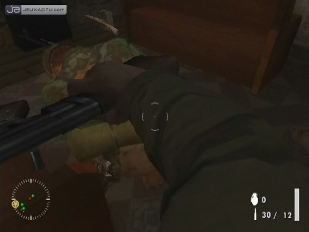 C’est d’autant plus regrettable que Medal of Honor : Avant-Garde est plutôt du genre à tomber sous le sens une fois la manette en main. Les différentes actions s’enchaînent sans grande difficulté même s’il faudra un petit temps d’adaptation avant de se familiariser avec le système de visée quitte à modifier la sensibilité des axes X et Y dans les options. Sur Wii, les sensations sont différentes, un brin plus immersives puisque le joueur devient acteur. On vise avec la Wiimote, on déplace le personnage et on recharge son arme avec le Nunchuk. Ceux qui ont eu l'occasion de jouer à Call of Duty 3 sur Wii devraient trouver leurs marques très rapidement. Afin de dynamiser les joutes armées, Electronic Arts propose aux rois de la gâchette un maximum de planque depuis lesquelles se pencher, se mettre à couvert afin d’arroser les soldats sans risquer pour sa santé. A ce propos, on trouvera la présence de caisses et autres bidons un peu too much ce qui tranche radicalement avec l’intérieur de certains bâtiments d’un vide abyssal. Le level design, à quelques exceptions près, est d’une banalité affligeante tant et bien que l’on remarque que pour atteindre un point de sauvegarde pas besoin de défourailler les ennemis nazis. Il suffit parfois simplement de courir comme un dératé en maintenant R3 ou L2 enfoncé pour repousser les vagues ennemies et récupérer un checkpoint. Tout de suite, ça casse un peu l’intérêt de Medal of Honor : Avant-Garde qui pourtant joue la carte de l’ambiance avec des musiques et des bruitages travaillés tout comme quelques scripts ici ou là assurant quelques actions spectaculaires.