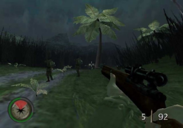 Tout débute dans les dortoirs d’un navire militaire américain. Votre personnage somnole tranquillement rêvant d’horizons paradisiaques quand soudain une explosion provoque la panique à bord. La sirènes se mettent à hurler, vos frères d’armes s’écroulent tout autour de vous, les cris et les explosions sont de plus en plus intensifs, bref c’est le chaos le plus total. Vous avancez aveuglément en tentant de porter secours à l’un puis à l’autre. Un coup d’extincteur pour maîtriser les flammes pour porter secours à vos camarades et hop vous voilà sur le pont du bateau où un avion kamikaze jap’ vient s’écraser sous vos yeux. L’action se fige soudainement puis laisse place à un ralenti avec un effet de blur des plus poignant pour souligner la dramaturgie de l’action. On vous équipe d’un fusil et là c’est l’atrocité de la guerre. Vous devez, non seulement abattre les escouades japonaises, mais aussi faire exploser les torpilles qui arrivent dans votre direction. Après avoir tenté en vain de défendre votre patrie, vous vous retrouvez sur une embarcation aux commandes de canons dans le but de faire mordre la poussière à ces soldats des cieux. Les avions surgissent de toute part, les explosions sont légions, les fumées sont aussi épaisses qu’aveuglantes et l’ambiance sonore appuie fortement cette immersion. Cette première scène n’a pour simple objectif que d’en foutre plein la vue, histoire de mettre les points sur les "i" et de montrer le potentiel technique de la PS2. Défi réussi haut la main et je peux vous assurer qu’on ne sort pas indemne de cette expérience.