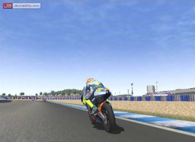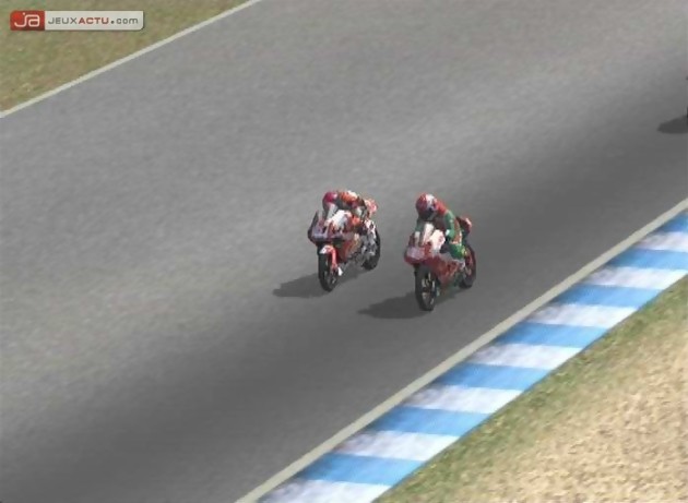 Le gameplay lorgne finalement plus vers l’arcade et certaines options entérineront ce choix et accessoirement conforteront le débutant. Par exemple, l’assistant de freinage, une fois activé, régulera automatiquement votre vitesse avant chaque entrée de virage. De même les réglages sont simplifiés au maximum, afin que même un enfant de bas âge soit capable de faire le bon choix. On notera toutefois au passage l’extrême sensibilité des touches de la manette qui rendront incontournables le passage vers le mode Entraînement, mais aussi la possibilité de choisir une jouabilité plus orientée vers la simulation. Le jeu en devient ainsi beaucoup plus technique. Les différences de comportement entre les cylindrées sont bien marquées et nécessiteront un certain temps d’adaptation. Ainsi, il faudra davantage anticiper les virages en Moto GP que dans les autres catégories et la marge d’erreur sera plus réduite à cause de la puissance élevée des machines. Plusieurs angles de vue sont proposés mais seul une est vraiment jouable et ce n’est pas la vue inédite qui laisse apparaître les contours de la visière du casque qui améliore les choses. Quant à l’intelligence artificielle, elle s’avère être plus que correcte. En effet, vos adversaires se défendent bien et poursuivent le combat jusque dans la dernière seconde. Ils mordillent la corde pour vous dépasser par l’intérieur, puis tenteront leur chance vers l’extérieur en cas d’échec, tout en commettant parfois quelques fautes sous la pression. On pourra alors véritablement se la jouer façon "Je t’aime, moi non plus" avec des dépassements spectaculaires et