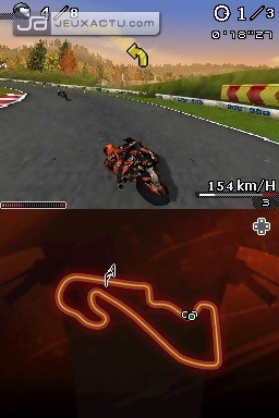 Hélas, on ne pourra pas faire traîner le suspense bien longtemps puisqu’une vidéo de gameplay du jeu a été dévoilée en mai dernier. Quelques images qui suffisent à se faire une idée sur la nature réelle de ce jeu de moto. Les fans peuvent donc se rassurer, dans Moto Racer DS, il vous faudra toujours - et plus que jamais - pousser des bolides infernaux dans des courses à 200 km/h qui feront allégrement mentir les principes fondamentaux de la dynamique de translation dictées par Newton dans ses fameuses lois. Ici, rien à secouer des lois de la physique élémentaire, étant donné que c'est la vitesse qui prime sur tout le reste, avec comme seuls mots d'ordre le fun et le plaisir. De l'Arcade pur et dur donc, dans la digne tradition du titre et comme si traverser des chicanes en épingle à cheveux à toute berzingue ne suffisait pas, le jeu intègre également un boost qui permet de faire cracher son pot d’échappement.