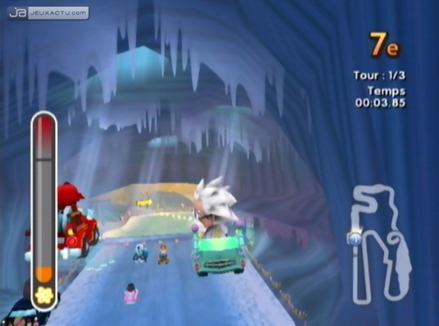 Le constat peut sembler rude, mais MySims Racing n'offre aucune marge de progression. La prise en main est immédiate, ce qui est plutôt une bonne chose, mais la conduite ne propose aucune subtilité qui permettrait de faire la différence avec les adversaires. Et ce ne sont pas les drifts qui mettront les nerfs au supplice, ni même le Boost-o-Mètre sur lequel on fondait pourtant quelques espoirs. Quatre configurations sont disponibles pour se saisir du volant, mais les solutions les plus viables demeurent la manette classique et le pad GameCube. Le duo Wiimote/Nunchuk se révèle trop aléatoire pour exécuter des manoeuvres de façon précise, tandis que le Wii Wheel n'offre toujours pas un confort de jeu convaincant pour les puristes. En termes de réalisation, MySims Racing ne rend pas vraiment service à la Wii avec des graphismes qui flirtent avec le low cost. C'est simple, les environnements sont pauvres, la modélisation des véhicules bancale et les couleurs fades. Point. Finalement, c'est dans la customisation des montures que MySims Racing parvient à redonner le sourire, à condition de répondre au moindre désir des habitants de Speedville, une sorte de hub dans lequel on doit se balader en mode Histoire. Chaque défi remporté permet d'accéder aux ébauches des pièces qui améliorent sensiblement les performances du véhicule. Pour pouvoir fabriquer lesdites pièces, il faudra également disposer de suffisamment d'essence, ces petits cristaux que l'on peut dénicher ici et là pendant les courses. A vrai dire, la personnalisation des engins n'est pas une étape primordial dans MySims Racing, du moins indispensable car il ne faut pas mettre toute sa santé pour gagner les épreuves. En fait, l'enchaînement des défis devient rapidement rébarbatif même s'ils ne sont pas insurmontables en soi. Mais ils sont à l'image du jeu de course d'Electronic Arts, à savoir soporifiques. Et même si le multijoueur jusqu'à quatre fait quelque peu oublier l'absence d'un mode online, MySims Racing est un jeu sur lequel on revient à reculons.