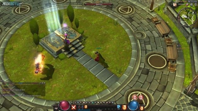 C'est donc au final un free-to-play qu'il nous est donné de tester aujourd'hui. Téléchargeable gratuitement et ne demandant aucun abonnement mensuel, le jeu peut tout de même être acheté en magasin pour un prix très modique. L'intérêt de la manœuvre ? Disposer d'un boîtier et d'un DVD à ranger sur l'étagère, d'un poster double face, d'un manuel 36 pages, d'un fichier PDF permettant de créer une figurine en papier, d'un familier exclusif en jeu, et de nombreux objets virtuels dont la valeur dépasse dix euros (sorts d'identification, espace d'inventaire supplémentaire, bonus d'expérience, invocations de marchants, runes de démontage, etc.). Globalement, l'offre est très honnête et l'acheteur ne se sentira pas floué par rapport à un joueur qui se contenterait de télécharger gratuitement le jeu. Naturellement, l'un comme l'autre pourront toujours utiliser par la suite leur carte bleue pour obtenir des avantages supplémentaires. Mais soyez rassurés, il est tout à fait possible de parcourir l'ensemble du jeu sans rien débourser. On passera peut-être un peu plus de temps à ranger son inventaire, on courra un peu plus après les sorts d'identification et voilà tout. En ce qui concerne le gameplay, nous avons bel et bien affaire à un mélange entre hack 'n' slash et MMORPG, comme l'on pouvait s'y attendre au vu de la passation de pouvoir entre Flagship Studios et HanbitSoft. Aucun mode solo n'est disponible, et l'interface tente le grand écart entre les deux mondes. On retrouve ainsi les classiques orbes de vie et de mana, ainsi qu'une utilisation frénétique de la souris (clic gauche pour l'attaque de base, clic droit pour l'attaque spéciale qui consomme de la mana). Mais on dispose également d'une barre de sorts, déclenchables d'un clic ou d'un raccourci-clavier. De même, la caméra cherche à contenter tout le monde. Par défaut, une vue de dessus nous est proposée, mais on peut passer à tout moment à une vue de dos, typique des MMORPG. Globalement, le jeu nous a tout de même paru plus maniable en vue haute. Dans tous les cas, qu'on soit un joueur de Diablo ou de World of Warcraft, on retrouve très rapidement ses marques. Les fonctionnalités du jeu et les raccourcis pour y accéder sont tout ce qu'il y a de plus standard. C'est évidemment à double tranchant. D'un côté on se réjouit de pouvoir plonger instantanément dans l'action sans avoir besoin d'une quelconque documentation. De l'autre, on regrette de n'être jamais surpris. Ce dernier grief est renforcé par l'aspect basique de la plupart des quêtes (amener telle potion à tel personnage, ramener 10 peaux de loup...), le manque de saveur du scénario global, et le classicisme de l'univers héroic-fantasy proposé. Si au premier abord les races (humains, gremlins, satyres, cyclopes) et les classes (scarificateur, ingénieur et pyromancien) peuvent sembler originales, on s'aperçoit rapidement qu'elles ont leur équivalent ailleurs. Les gremlins font office de nains, les scarificateurs de guerriers, etc. D'ailleurs, la création de personnages ressemble trait pour trait à celle de World of Warcraft. Si l'aspect massivement multijoueurs permet de trouver très facilement des compagnons pour aller nettoyer les souterrains remplis de montres, il ne faut tout de même pas s'attendre à un véritable monde persistant. Ainsi, les donjons sont générés aléatoirement et peuvent être réinitialisés à volonté. Et surtout, on se rend d'un lieu à l'autre en empruntant des portails de téléportation et non en parcourant de sublimes paysages. Si les quêtes de réputation et l'artisanat sont empruntés aux MMORPG, au final le jeu semble tout de même s'adresser en priorité aux amateurs de hack 'n' slash. En attendant la sortie de Diablo III et Torchlight II, pour lesquels on trépigne déjà, Mythos mérite un petit coup d'oeil.