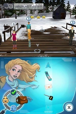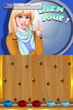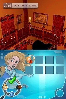 Mais dans notre malheur, c'est là que l'on peut remercier chaudement les développeurs du jeu, qui ont consciencieusement pensé aux joueurs (peu attentifs) que nous sommes. Ici, nul besoin de comprendre un traître mot de ce qu'il se passe, puisqu'avec son déroulement ultra linéaire et son gameplay dirigiste, on pourra aisément venir à bout de ce soft sans faire fonctionner un seul neurone. Lorsqu'on rentre dans une pièce, un point d'exclamation nous indique les objets à ramasser. Lorsqu'on se retrouve face à une combinaison, celle-ci finit par être découverte en trifouillant les boutons un peu n’importe comment. Même lorsqu'on est au milieu d'une pièce, des cercles de couleur nous indiqueront comment accéder à une autre partie de la même pièce ! Au final, n'importe quel gamer ayant tâté au moins une fois dans sa vie ce genre de jeu se sentira irrémédiablement pris pour un imbécile. Et même si par moment, un petit mini-jeu viendra égayer un peu la partie (jouer trois notes au piano, crocheter une serrure, placer deux roues crantées dans une machine pour activer un mécanisme...), ces derniers se révèlent être d'une simplicité tellement enfantine que leur résolution ne procurera aucun plaisir. Bref, neuf fois sur dix, il suffira de cliquer sur les points qui clignotent, de récupérer un objet par terre et d'échanger une phrase avec un personnage pour que le tour soit joué. De quoi faire se retourner Horst Tappert dans sa tombe... Avec son scénario bâclé, son absence de difficulté et sa faible durée de vie, Nancy Drew ne nous aura vraiment pas convaincu. Et si l'on rajoute à cela une maniabilité fichtrement mal pensée (où l'on est obligé de se servir en même temps de la croix directionnelle, de la touche A et du stylet) et certains angles de caméra pas du tout judicieux (des grands plans larges où l'on ne voit strictement rien), on se retrouve là face à un point & click pas franchement recommandable. C'est un peu dommage car le jeu dispose en revanche d'une réalisation soignée (avec des cut-scenes dynamiques et fort jolies), de graphismes agréables et d'une musique entraînante que l'on croirait sortie d'un Alone in the Dark 2. Des points positifs qui sont bien insuffisants pour sauver le soft de Gorilla, qui aurait tout intérêt à retravailler sa copie s'il veut sortir un troisième épisode sur DS, où la concurrence est plus que rude.