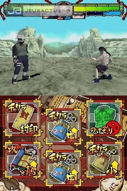 Graphismes en 3D, habillage similaire, gameplay à peu près identique, à première vue, Naruto : Ninja Destiny apparaît comme la réplique miniature des épisodes de Naruto Gekito Ninja Taisen! sortis sur GameCube dernièrement. Si en plus l’éditeur se nomme Tomy ou plutôt Takara Tomy, le lien entre les deux franchises est aussitôt établi. Mais il s’agit-là que de la face visible de l’iceberg, car une fois la cartouche de Naruto : Ninja Destiny insérée dans sa DS, le résultat n’est plus du tout le même…
