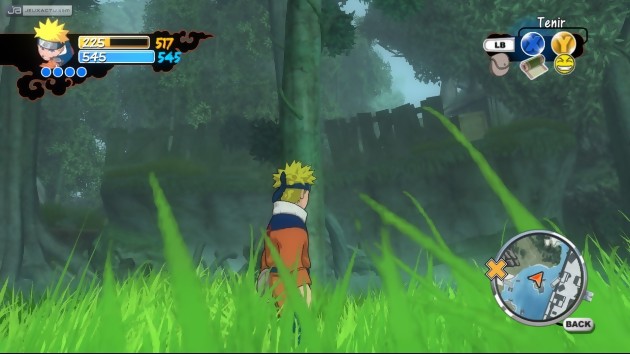 Ce manque de profondeur, on le retrouve également dans l’aventure. Très vite, on se rend compte que tout le jeu se repose sur des allers et venus constants entre le village de Konaha et les quelques espaces extérieurs où l’on ne fait que rencontrer les mêmes méchants aux mêmes endroits. Battre un bandit trois fois avant d’accéder à son lieutenant puis enfin au chef qu’il va falloir battre par deux fois, voilà le genre de missions que nous propose Naruto : Rise of a Ninja. Même les défis de sprint et les séquences de course dans les arbres, pourtant sympas de prime abord, se révèlent être lassants à force tant ils sont fréquents. Les missions annexes manquent elles aussi de variété puisque l’on se contente toujours des mêmes défis tout au long de l’aventure. Trouver des pièces, apporter des soupes de ramen à domicile, jouer à cache-cache avec Konohamaru, là encore, le manque de variété fait cruellement défaut au jeu. Pour palier à cette carence, Ubisoft a eu l’ingénieuse idée de ponctuer l’aventure de nombreuses vidéos repiquées du dessin animé afin que l’illusion soit parfaite. Malheureusement, le subterfuge ne fonctionne que le temps d’un tour de passe-passe digne de Sylvain Mirouf. Car balancer des passages du dessin animé que n’importe quel fan connaît sur le bout des doigts est une nouvelle erreur qu’un bon conseilleur aurait pu déceler pendant la production du jeu. Manque de temps ? Manque d’argent ? Peu importe les raisons, il aurait été plus sympathique de proposer davantage de cinématiques réalisées à partir du moteur du jeu. Pour conclure en apothéose, il faut savoir que Naruto : Rise of a Ninja se boucle entre 6 et