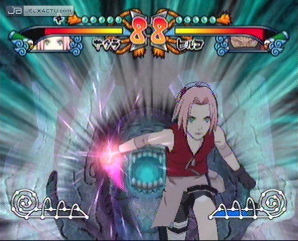 Comme je vous le disais quelques paragraphes plus haut, et comme je l’avais déjà suggéré lors de ma preview réalisée au moment du Tokyo Game Show 2007, le gameplay de Naruto Shippuuden Gekito Ninja Taisen! EX 2 n’a guère évolué. Certes, le système de combat de la série a maintes et maintes fois fait ses preuves en matière de prise en main et d’efficacité, mais après quatre ans d’existence, il serait temps que les concepteurs passent un petit coup de Swifer, histoire de redonner un peu de brillance à l’ensemble. En attendant, les puristes préfèreront toujours brancher une manette GameCube que de gesticuler la Wiimote pour enchaîner les combos. Pour ce qui est des attaques, les développeurs ont évidemment pensé à mettre à jour les techniques de chacun, et c’est assez plaisant de retrouver des attaques inédites, même pour Naruto.
