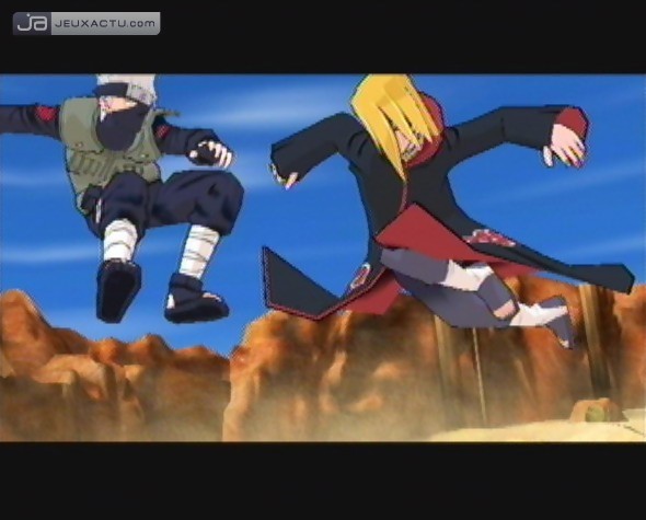 En revanche, 8ing a conservé les mécanismes principaux de jeu dans Naruto Shippuuden Gekito Ninja Taisen! EX, tout en apportant quelques subtilités bienvenues. Dorénavant, chacune des arènes, fermées de prime abord, abritent des éléments supplémentaires. Caisses, rochers, rondins de bois, ces objets à première vue sans intérêt offrent de nouvelles possibilités de gameplay aux personnages. Il est en effet désormais de se cacher derrière l’un de ces éléments pour éviter un shuriken ou une attaque, mais il est aussi possible de s’en servir d’appui pour se propulser dans les airs et passer de l’autre côté de son ennemi. Mieux, les arènes de combat qu’on pensait donc fermées cachent en réalité un second plan, à condition d’en forcer l’accès, soit sur les côtés, soit pas le bas, un peu de la même manière que dans un épisode de Dead or Alive. Pour y accéder, rien de plus simple, il suffit d’envoyer valdinguer son adversaire par un coup bien précis ou de fracasser le sol après plusieurs attaques. La transition entre les deux arènes s’illustre à l’écran par une cinématique pendant laquelle les joueurs ne sont pas seulement de simples spectateurs. Balancer un gnon supplémentaire ou esquiver ladite mandale, voilà donc les deux possibilités offertes aux joueurs, selon la position (offensive ou défensive) dans laquelle on se trouve.