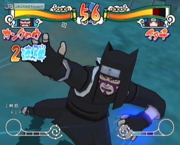 Visuellement tout d’abord, les nouvelles tenues vestimentaires de nos héros permettent d’intensifier ce sentiment de nouveauté. Ensuite, l’ensemble des coups spéciaux de chacun d’entre eux a également été revu et corrigé, ce qui procure un véritable plaisir supplémentaire. En effet, des personnages tels que Sakura, Tenten et Neji n’ont plus grand-chose à voir avec les anciens volets et s’accordent avec leurs évolutions techniques liées au manga et au dessin animé. Entraînée par Tsunade, Sakura possède désormais une force de frappe hallucinante, si bien que chacun de ses coups donnent l’impression de causer des dégâts sévères à l’adversaire. Une sensation de puissance renforcée dès lors qu’elle concentre son chakra à l’extrémité de ses poings. Tenten aussi n’est pas en reste et ses techniques de ninja lui assurent une grande variété d’armes blanches. Ainsi, elle est capable de permuter d’un sabre à une lance, en passant par le bâton ou bien encore la chaîne en un clin d’œil, réduisant ainsi les actions anticipées de l’adversaire. Quant aux autres personnages tels que Naruto, Gaara, Rock Lee ou bien encore Kankuro, ils se démarquent avant tout par de nouvelles furies, reprises bien évidemment du manga et qui devraient satisfaire tous les fans de l’œuvre de Masashi Kishimoto. A ce propos, il est utile de savoir que l’ensemble des 14 persos possèdent chacun deux furies, ce qui permet de varier les plaisirs.