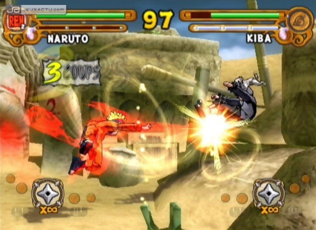 Car, on a beau lui trouver tous les prétextes du monde, cette nouvelle itération ressemble davantage à une grosse mise à jour qu’à une véritable suite. Certes, on peut découvrir un mode de jeu inédit (Histoire du héros) qui permet aux fanatiques de résumer l’historique de Naruto par le biais de cinématiques statiques (des dessins donc) et de quelques combats sans grand intérêt, mais rien de bien excitant dans le fond, ni dans la forme d’ailleurs. Ceux qui souhaitent obtenir un mode solo plus consistant, il reste le mode "Compétition Ultime", repris du précédent volet et qui peut être considéré comme un prémice du mode Aventure-RPG intégré dans Naruto Shippuuden Narutimate Accel. Malheureusement, celui de Naruto : Ultimate Ninja 3 n’étant pas assez approfondi pour captiver notre attention, il ne sera qu’une alternative aux matchs que les joueurs enchaîneront grâce au mode "Versus". Côté graphismes, rien à se mettre sous la dent, CyberConnect2 continue de réutiliser le même moteur des épisodes précédents sans y apporter la moindre retouche. Cela dit, l’aspect cel-shadé parcourt le temps plutôt bien et même avec trois ans de retard, Naruto : Ultimate Ninja 3 reste suffisamment beau à voir pour que nos rétines soient flattées. Dans l’absolu, Naruto : Ultimate Ninja 3 est plus complet que son prédécesseur, mais le manque flagrant de nouveautés, aussi bien dans le gameplay que dans les modes de jeu, oblige le joueur initié à réfléchir à deux fois avant d’ouvrir son porte-monnaie. Evidemment, ceux qui n’avaient pas craqué pour les précédents opus peuvent se ruer sur le titre sans le moindre souci, Naruto : Ultimate Ninja 3 est suffisamment bien troussé pour passer d’excellents moments.