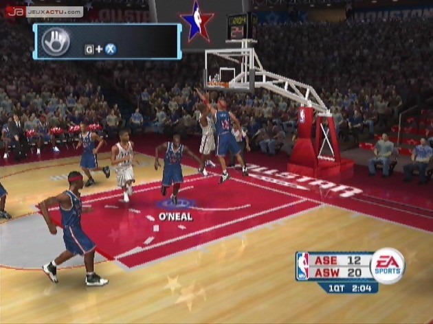 Certes, rien qu’en se basant sur les éditions précédentes, NBA live 06 était déjà un titre complet avant l’heure mais on nage ici en terrain connu et on se demande finalement comment les développeurs vont réussir à nous faire passer la pilule pour justifier l’achat de leur jeu. Et bien après quelques parties, même s’il reste encore perfectible sur bien des abords, on ne peut s’empêcher de remarquer des progrès notables au niveau du gameplay. Par exemple, les joueurs sont désormais capables de réceptionner un ballon en pleine course sans marquer un temps d’arrêt, ce qui permet ainsi d’exercer des contre-attaques foudroyants. Les remises en jeu sont également plus dynamiques puisque l’on peut demander aux joueurs de se démarquer ou encore de faire écran. Si globalement, NBA live 06 nécessite une certaine période d’acclimatation pour en profiter pleinement, une fois passé ce cap, pouvoir enchaîner les dunks à 180 degrés, tomahawks, alley-oop ou tout autre mouvement spectaculaire est vraiment jouissif. Le show passe à la vitesse supérieure cette année grâce à l’apparition du Freestyle Superstar. En effet, les meilleurs joueurs de la planète possèdent chacun un style un peu particulier et Electronic Art a poussé le vice de les inclure dans son jeu grâce à la motion capture. Les basketteurs dotés de ce genre d’habilités sont repérables par une icône qui permet également de connaître à quelle catégorie ils appartiennent (high flyer, meneur de jeu, marqueur, tireur, stoppeur ou homme fort). Une combinaison de deux touches au moment opportun permet alors d’exécuter les mouvements spéciaux. Par exemple, les hommes forts font la loi à l’intérieur de la raquette tandis que les stoppeurs mettront à mal les attaquants adverses.