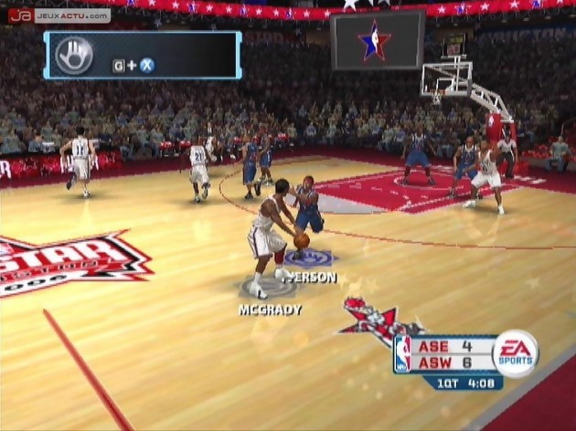 Certes, rien qu’en se basant sur les éditions précédentes, NBA live 06 était déjà un titre complet avant l’heure mais on nage ici en terrain connu et on se demande finalement comment les développeurs vont réussir à nous faire passer la pilule pour justifier l’achat de leur jeu. Et bien après quelques parties, même s’il reste encore perfectible sur bien des abords, on ne peut s’empêcher de remarquer des progrès notables au niveau du gameplay. Par exemple, les joueurs sont désormais capables de réceptionner un ballon en pleine course sans marquer un temps d’arrêt, ce qui permet ainsi d’exercer des contre-attaques foudroyants. Les remises en jeu sont également plus dynamiques puisque l’on peut demander aux joueurs de se démarquer ou encore de faire écran. Si globalement, NBA live 06 nécessite une certaine période d’acclimatation pour en profiter pleinement, une fois passé ce cap, pouvoir enchaîner les dunks à 180 degrés, tomahawks, alley-oop ou tout autre mouvement spectaculaire est vraiment jouissif. Le show passe à la vitesse supérieure cette année grâce à l’apparition du Freestyle Superstar. En effet, les meilleurs joueurs de la planète possèdent chacun un style un peu particulier et Electronic Art a poussé le vice de les inclure dans son jeu grâce à la motion capture. Les basketteurs dotés de ce genre d’habilités sont repérables par une icône qui permet également de connaître à quelle catégorie ils appartiennent (high flyer, meneur de jeu, marqueur, tireur, stoppeur ou homme fort). Une combinaison de deux touches au moment opportun permet alors d’exécuter les mouvements spéciaux. Par exemple, les hommes forts font la loi à l’intérieur de la raquette tandis que les stoppeurs mettront à mal les attaquants adverses.