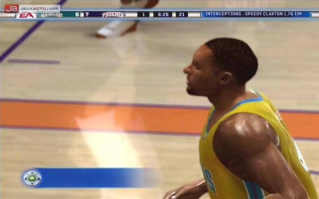 Malheureusement, rien n’est parfait dans ce déluge de polygones polis à la sauce 360. Pour pouvoir afficher autant de monde à l’écran, Electronic Arts a dû faire quelques concessions qui se traduisent par des baisses de frame-rate assez sévères lors d’une partie. Ne soyez pas surpris de voir l’action ralentir, il ne s’agit pas là d’un mode bullet time, sorti tout droit d’un jeu Matrix, mais tout simplement une coup de pompe de la part de la console qui a bien du mal à gérer tout ce maelström de données à afficher simultanément. Bien connu pour ses modes de jeu nombreux voire exhaustif, la série NBA Live risque d’en pâtir un sérieux coup avec cette mouture 360 à qui l’on a amputé la moitié de son tronc. Inutile de fouiner dans le menu du jeu, les modes Dynasty, Freestyle, Superstar et autres NBA All Stars Week-end sont passés à la trappe. Il va falloir se contenter du mode « Saison » et des matchs rapides, ce qui est bien famélique pour le joueur qui avait l’habitude de se perdre dans la horde de modes de jeux que présente habituellement la série. Soulignons également la disparition des commentaires en français dont disposaient les autres versions, avec la voix si américaine de George Eddy. Dans la version 360 du jeu, il est conseillé d’avoir quelques notions en anglais pour espérer comprendre les propos des journalistes américains. Pourquoi une telle censure ? Il est évident qu’Electronic Arts a dû adapter à la hâte son NBA Live pour être présent lors de la sortie de la Xbox 360. Un choix on ne peut plus regrettable car dans l’ensemble, le gameplay du jeu tient la route.