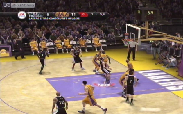 Dire que les fans de basket-ball sont restés sur leur faim l’année passée avec NBA Live 07 est un doux euphémisme. Après avoir été la risée de tous les playgrounds, la licence phare d’Electronic Arts avait une revanche à prendre, et pas seulement envers son concurrent de toujours, la série NBA 2K. Il en va de son honneur mais aussi de sa réputation. Bien décidés à se racheter une conduite, les développeurs d’EA Canada ont donc décidé de repartir du bon pied, afin de ne pas se faire trop distancer par la concurrence. Graphiquement tout d’abord, NBA Live 08 offre une réalisation bien plus soignée que celle du précédent volet. La modélisation des stars de la NBA n’est pas toujours parfaite – Tony Parker apparaît un peu bouffi dans le jeu, un comble pour celui qui est censé être l’icône de la licence – mais dans l’ensemble, le titre s’en tire plutôt bien. Certes, les maillots des joueurs ont la fâcheuse tendance à se balader un peu trop au gré des mouvements, mais les personnages semblent suffisamment naturels pour faire illusion. La présence d’un public en 3D (quelque peu cubique néanmoins), des animations dans tous les sens et les commentaires toujours aussi pertinents du duo Besnard / Eddy renforcent l’immersion, et permettent à NBA Live 08 de dégager une certaine ambiance, donnant l’impression d’assister à un véritable match de basket à la télé. Cela dit, on reste encore loin du résultat obtenu dans le dernier NBA 2K7 qui avait, il faut bien l’avouer, placer la barre assez haut.