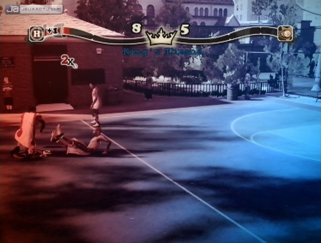 Ne tournons pas autour du pot, si habituellement les jeux EA Sports ne proposent pas d’emblée un challenge épicé, la difficulté de NBA Street Homecourt va crescendo et propose donc des défis de plus en plus difficiles même en mode moyen. Et on ne le regrettera pas. De ce fait, on est obligé de tenter diverses techniques pour marquer un panier et il ne suffit pas de se contenter des dunks pour renvoyer ses adversaires dans leur bercail. On retrouve en grande majorité dans le mode "Défi Homecourt" des matches classiques allant de 5 à 30 points sans aucune restriction. Parfois même, il faudra mener son adversaire de 3 à 5 points pour boucler la rencontre. Mais le "Défi Homecourt" est également composé d’épreuves où seuls les tirs comptent et où au contraire uniquement les dunks seront comptabilisés. De cette manière, les rencontres changent votre technique de jeu mais en aucun cas la fameuse jauge de gamebreaker que l’on commence à connaître dans les moindres détails. Comme pour la série FIFA Street et les anciens opus NBA Street, vous devez réaliser un maximum de tricks dans le but d’humilier votre adversaire afin de remplir une jauge à l’écran. Plus les combos sont nombreux, plus cette jauge se remplit. Cependant pour valider vos efforts, vous devrez marquer un point. A contrario, si l’adversaire récupère la balle, il faudra tout recommencer. Lors de chaque panier, vous encaisserez les gains de vos figures plus un petit bonus associé à votre façon de marquer. Lorsque le gamebreaker est disponible, l’écran change de teinte avec un jeu de contraste à la manière de Def Jam : Icon. Il ne vous reste plus qu’à l’activer en vous rendant au milieu du terrain. A ce moment-là, votre joueur devient presque intouchable et peut aisément enchaîner des tricks de folie afin de multiplier le score en cas de panier et de réduire d’un point le total des adversaires. Cette technique peut totalement inverser le cours d’un match et donne plus de piment aux rencontres.