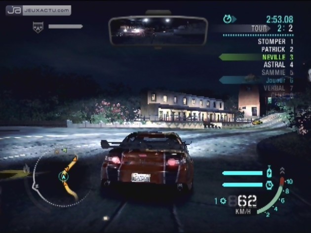Le coup de pouce de Nikki, votre ex-girlfriend, est l’occasion de découvrir les nouvelles subtilités de jeu mises en place dans Need For Speed : Carbon. Fini les courses en solitaire, désormais vous pourrez recruter une équipe entière afin de vous épauler durant les challenges. Il y a trois classes de coéquipiers que vous embaucherez. Les premiers sont les Bloqueurs. Comme leur nom l’indique, leur boulot est d’entraver la bonne conduite de vos concurrents afin de vous laisser le champ libre ou alors de retarder leur avancée grâce à des block passings sournois. La deuxième catégorie de gusses est Aspiros. Ici, une bagnole se colle devant vous, vous faisant profiter de son aspiration. Si de prime abord, on n’a pas l’impression que de rester derrière le faisceau bleu de vos collègues vous fasse gagner de la vitesse, on remarque bien vite que cette technique s’avère cruciale lorsque vous êtes fasse à des adversaires remontés et à leurs bagnoles boostées. La troisième et dernière catégorie de pilotes se situe du côté des éclaireurs. Leur taff est de vous montrer la route à suivre pour semer vos adversaires en usant des raccourcis et des meilleures trajectoires possibles.