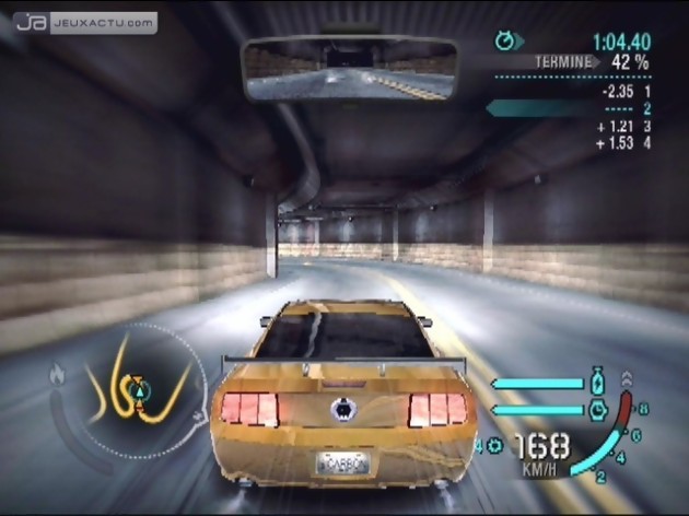 Ce cas se présente uniquement lors des runs à plusieurs, car en plus des sprints et des circuits, Need For Speed : Carbon propose un grande diversité de challenges. Outre les très classiques Contre-la-montre et Drift, avec pour ce dernier une conduite un petit peu décevante, Electronic Arts a rajouté le mode "Course Radar". Pas besoin de vous faire un dessin. Le principe est de passer le plus vite possible devant des radars afin d’obtenir la meilleure vitesse cumulée à la fin. Mais la plus grosse nouveauté de cet épisode est sans conteste les courses "Canyon" empruntes à The Fast and The Furious : Tokyo Drift, le film. Il en existe quatre sortes et dans tous les cas, une sortie de route et c'est le "Game Over" assuré. Mieux vaut avoir une trajectoire parfaite pour ne pas finir dans le décor. Le plus simple pour se familiariser avec ce challenge est le Contre-la-montre où vous êtes seul à dévaler la pente. Descendre le canyon en solitaire est également de la partie avec le mode "Drift Canyon" où vous devez totaliser un maximum de points en dérapant dans les virages et en doublant votre score grâce à votre vitesse max ou aux zones bonus. Vient ensuite la "Course Canyon" classique avec trois adversaires à affronter. Mais le summum est atteint lorsque vous devez défier un adversaire en mode "Duel Canyon". Cette épreuve se joue en deux temps. Tout d’abord, vous poursuivez un pilote et glanez des points en restant le plus près possible de son pare-choc arrière. Mieux encore, si vous parvenez à le dépasser durant un certain laps de temps, vous remporterez automatiquement la course avant de franchir la ligne d’arrivée. La seconde manche, c’est l’inverse. Cette fois-ci, c’est vous qui devez rouler le plus vite possible afin de semer votre poursuivant. Celui qui a le plus de points à la fin de la manche remporte la partie. Mais n’oubliez pas que toute sortie de route est définitive.