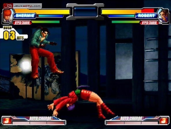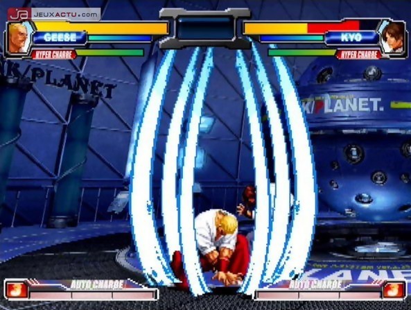 Nul besoin de taper du poing sur la table, la barre de vie met un temps fou à se remplir et l’adversaire à amplement le temps de nous pulvériser. La mise en place de ce Tag System apporte un aspect stratégique aux combats, avec la possibilité de combiner ses attaques entre ses deux protagonistes, peu importe l’équipe formée. Pour ce faire, il faut impérativement que le "D. Assault OK" s’affiche pour réaliser l’attaque en tandem. Avec une telle idée, on aurait pu penser à une attaque ultime pouvant vider au moins la moitié de la barre de santé. Que nenni ! Le Double Assault fait peine à voir et certaines furies de niveau un arrivent à engendrer davantage de dégâts. Un comble ! Ne nous affolons pas pour autant, la foultitude de coups spéciaux et le nombre de furies par perso n’a jamais été aussi prolifique pour une production Playmore. SNK Playmore a même pensé à mettre en place quelques variantes pour chambouler les habitudes des professionnels du quart de cercle. Certains crieront au scandale, d’autres trouveront l’idée sympathique. Le triple Power Geyser de Terry Bogard par exemple ne s’exécute plus avec deux boutons ou selon l’état de la jauge de vie, mais se déclenche désormais par une série de quarts de cercle vers l’avant après avoir sorti la première gerbe d’énergie. De quoi emmerder un bon paquet de joueurs mais finalement, rien n’a été sabré et c’est bien là l’essentiel.