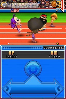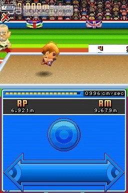 Au total, ce ne sont pas moins de 24 épreuves différentes qui ponctueront notre parcours. Comme d’habitude, c’est l’athlétisme qui est ici mis en avant avec toutes les épreuves qui s’en réfèrent. 100 mètres, 400 mètres, 110 mètres haies, saut en longueur, saut en hauteur, triple saut, saut à la perche, la liste est longue, et à cette dernière s’ajoutent d’autres défis comme le tir à l’arc, le skeet, la natation et bien d’autres encore. Si la variété est de mise, ce n’est malheureusement pas le cas en ce qui concerne le gameplay. En voulant coller à l’ambiance old school des premiers épisodes, Konami n’a pas pensé qu’en 2008, frotter l’écran tactile de gauche à droite s’avère être assez ennuyant à la longue. Dans New International Track & Field, les boutons ont en effet été remplacés par le stylet et l’écran tactile. Inutile donc de sortir le briquet pour essayer de faire péter le chrono ou le high-score, ici tout se fait à l’aide du stylet. Konami a beau nous préciser qu’il faille passer le stylet avec délicatesse sur l’écran tactile afin de ne pas l’endommager, le conseil reste utopique puisque pour espérer remporter une épreuve, il faut impérativement frotter l’écran avec vigueur. Vous voilà prévenus !