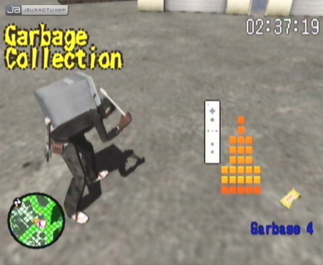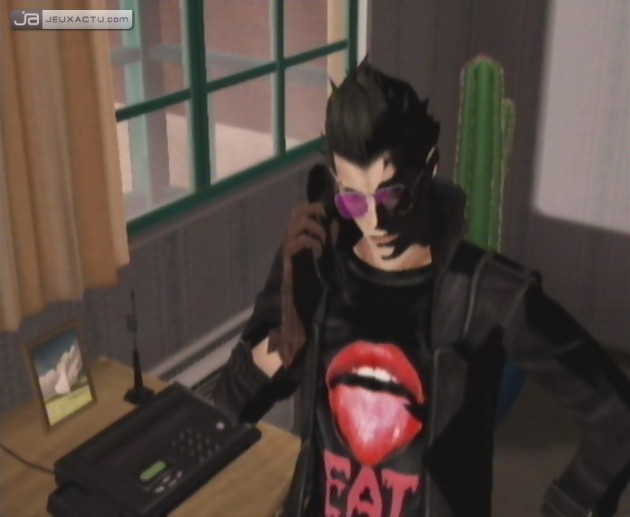 Une sorte de GTA donc mais en version allégée, aussi bien dans son approche qu’au niveau de la réalisation. Bien moins imposante que le Liberty City de GTA III, Santa Destroy manque surtout de vie. Les rues sont généralement vides et les quelques passants qui circulent ici et là se résument à marcher bêtement, et ne se donnent même pas la peine de fuir la route lorsque Travis débarque à toute berzingue avec son tank à deux roues. A l’instar de la série de Rockstar Games, le jeu peut s’appréhender de deux façons. La première, qui consiste à enchaîner les missions obligatoires, permet d’avancer dans le jeu et suivre les péripéties de notre otaku fougueux. La seconde lecture, plus libre, permet de prendre du bon temps et de profiter des avantages que peut nous offrir Santa Destroy. S’il est évidemment de bon ton de passer à la boutique vintage pour s’acheter le dernier t-shirt à la mode ou la dernière paire de pompes qui va bien, Travis peut aussi s’amuser à sculpter son corps à la salle de muscu, ramasser les détritus au sol pour jouer son rôle de bon citoyen, tondre la pelouse d’un voisin ou bien encore aider un commerçant à récolter des noix de coco. Une façon comme une autre de combler le vide.
