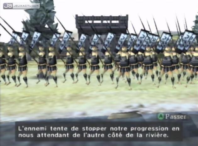 Tout en dirigeant sa boule de canon, il va donc falloir contrôler les troupes qui avancent à pas d’escargot. Pour ce faire, Nintendo a eu une idée de feu de Dieu : l’utilisation du microphone. Bien calé sur le haut de la manette, voilà qu’on se met à hurler pour faire avancer ou reculer ses troupes. On peut aussi leur demander de cerner ou d’attaquer l’ennemi dans un élan d’héroïsme spontané. Car avant de foncer tête baissée l’arme au poing, il est de bon ton de réfléchir à deux fois, sous peine de constater des pertes humaines considérables. Alors oui, on pourra toujours faire appel à de nouveaux guerriers en appuyant sur Z, mais ceux-là sont plus que limités et mieux vaut réfléchir avant d’entamer une offensive aveugle. D’autant que nos hommes ne sont pas à l’abri de se faire écraser par Odama, petits mortels de leur état. Si le microphone fonctionne à merveille, grâce à une reconnaissance vocale de bon aloi, et que le jeu respire l’originalité, force est de constater que Odama s’essouffle assez rapidement. La faute à des graphismes de bas étage (on se croirait sur PSone), des tableaux franchement pas séduisants et des parties qui ont tendance à s’éterniser, surtout quand la stratégie a du mal à convaincre. Oui, je ne peux qu’acquiescer, Odama est un peu lourd sur les bords.