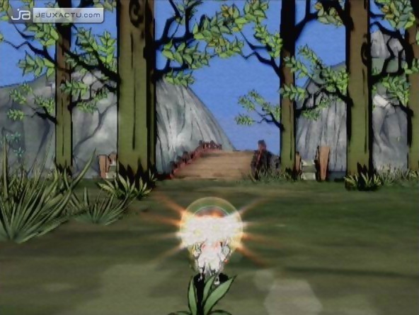 L’enfance des premiers gribouillis trouve ici un sens quand, avec une grande application, les points sont apposés sur l’œil manquant d’une peluche, ou lorsque avec fierté, le joueur complète une constellation pour voir apparaître un animal à la génétique divine (on est bien loin des Chevaliers du Zodiaque…). Une satisfaction certaine peut être aussi éprouvée quand le graffiti sur un mur n’est autre que le masque dessiné de votre pousse adroit pour pouvoir pénétrer la tanière ennemie. Apporter le bien être en composant avec la nature vous sera peu à peu permis au fil de vos aventures, et c’est non sans espoir que nombreux sont ceux qui accorderont leur foi au dieu loup. Difficile pour les messieurs de décrocher du jeu lorsque les vœux d’une plantureuse prêtresse vous seront exposés tels les beaux fruits que la nature peut nous offrir. Ainsi vous observerez Issun, grand amateur de douceurs dire ou plutôt exprimer dans le langage yaourt : "Oh les beaux melons !" (oui, Issun aime les métaphores…). Pas besoin de comprendre la langue du yaourt pour saisir les sentiments de joie, de tristesse, de peur ou de mélancolie. La superbe musique du jeu permet à elle seule de saisir la large palette émotionnelle du genre humain. Exit donc les voix-off à traduire dans toutes les langues ce qui est sans aucun doute un facteur d’économie sans pour autant nuire à la qualité du jeu. La patte de Clover est bien perceptible avec les petits trèfles déterrés lors de vos errances, qui font allusions au logo du studio en marge de disparaître (une décision de Capcom bien discutable après un tel chef-d’œuvre).
