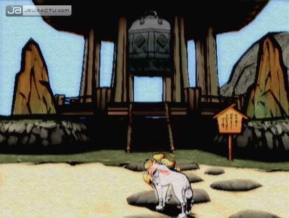 L’enfance des premiers gribouillis trouve ici un sens quand, avec une grande application, les points sont apposés sur l’œil manquant d’une peluche, ou lorsque avec fierté, le joueur complète une constellation pour voir apparaître un animal à la génétique divine (on est bien loin des Chevaliers du Zodiaque…). Une satisfaction certaine peut être aussi éprouvée quand le graffiti sur un mur n’est autre que le masque dessiné de votre pousse adroit pour pouvoir pénétrer la tanière ennemie. Apporter le bien être en composant avec la nature vous sera peu à peu permis au fil de vos aventures, et c’est non sans espoir que nombreux sont ceux qui accorderont leur foi au dieu loup. Difficile pour les messieurs de décrocher du jeu lorsque les vœux d’une plantureuse prêtresse vous seront exposés tels les beaux fruits que la nature peut nous offrir. Ainsi vous observerez Issun, grand amateur de douceurs dire ou plutôt exprimer dans le langage yaourt : "Oh les beaux melons !" (oui, Issun aime les métaphores…). Pas besoin de comprendre la langue du yaourt pour saisir les sentiments de joie, de tristesse, de peur ou de mélancolie. La superbe musique du jeu permet à elle seule de saisir la large palette émotionnelle du genre humain. Exit donc les voix-off à traduire dans toutes les langues ce qui est sans aucun doute un facteur d’économie sans pour autant nuire à la qualité du jeu. La patte de Clover est bien perceptible avec les petits trèfles déterrés lors de vos errances, qui font allusions au logo du studio en marge de disparaître (une décision de Capcom bien discutable après un tel chef-d’œuvre).