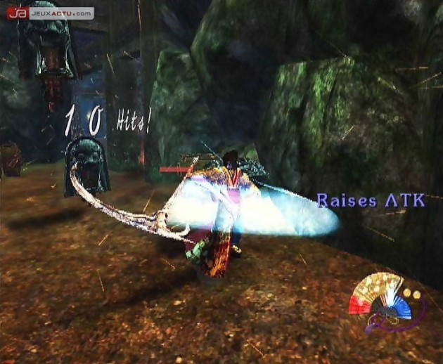 D’un point de vue purement esthétique, il est vrai que Otogi 2 : Immortal Warriors fait vaguement resucé, un perso en vue à la troisième personne doté d’une armure aussi stylisée que meurtrie, une chevelure dont la forme épousée par le vent nous fait pensé à l’écharpe d’un certain Shinobi et le tout auréolé d’un gameplay simple mais accrocheur. On pourrait crier au plagiat mais le titre de From Software est à la fois tout ceci et autre chose. Car même si les principaux ingrédients qui ont fait le succès des jeux cités plus haut sont repris, Otogi 2 : Immortal Warriors apporte sa touche personnelle qui en fait un jeu unique et non un énième ersatz. Il se dégage effectivement une aura particulière qui le distingue des autres jeux de sa catégorie par son ambiance à la fois mystique et pleine de grâce. Il suffit de voir Raikoh et ses quatre généraux, ce dark-héro que vous incarnez et qui a pour objectif de purifier tous les démons à l’aide de ses armes blanches et autres magies. Le tout est mis en valeur par des sonorités japonaises à la consonance médiévale et chevaleresque qui n’est pas sans rappeler un certain Vampire Hunter D. Toujours les yeux fermés et les cheveux au vent, Raikoh est resté toujours aussi muet. C’est simple, il ne cause pas, ni même les généraux qui sont sous ses ordres. Mais tout ceci ne fait-il pas partie de cette mystification qui enveloppe le jeu et qui participe au charme qui s’en dégage ?